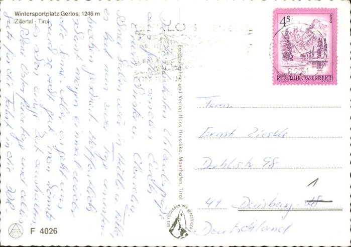71455860 alte Postkarte Gerlos Zillertal Skifahrer postalisch gelaufen Erhaltung siehe scans KatCode: 11390335070912