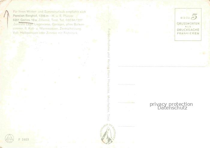 74100363 Gerlos Zillertal Tirol AT Pension Berghof Wintersportplatz Alpen postalisch nicht gelaufen Erhaltung siehe scans [FriedD77] KatCode: 11390335070912