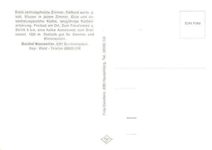 73876752 Germannsdorf Hauzenberg Gasthof Kronawitter Panorama Zimmer postalisch nicht gelaufen Erhaltung siehe scans [FriedD77] KatCode: 11110009275126