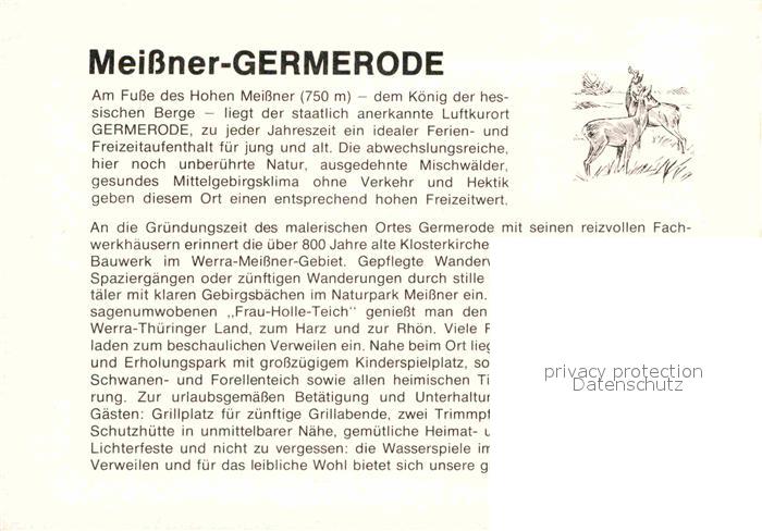 72770277 Germerode Ansicht mit Hohem Meissner Schwanenteich Kegelbahn postalisch nicht gelaufen Werbekarte (keine Postkarte) Erhaltung siehe scans [FriedD77] KatCode: 11110006636008