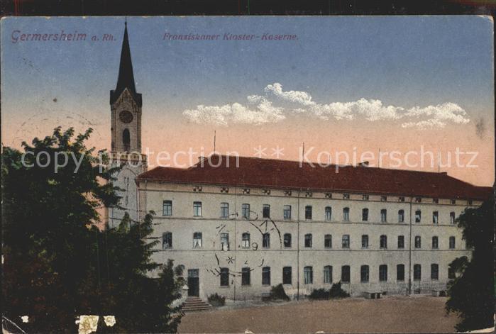 41753833 alte Postkarte Germersheim Franziskaner Kloster Kaserne postalisch gelaufen Erhaltung siehe scans KatCode: 11110007334007