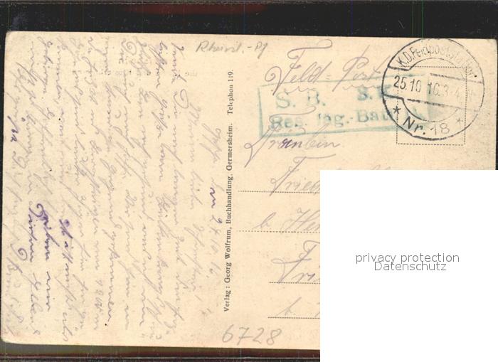 41756725 alte Postkarte Germersheim Katholische Kirche Klosterkaserne postalisch gelaufen Feldpost Erhaltung siehe scans KatCode: 11110007334007