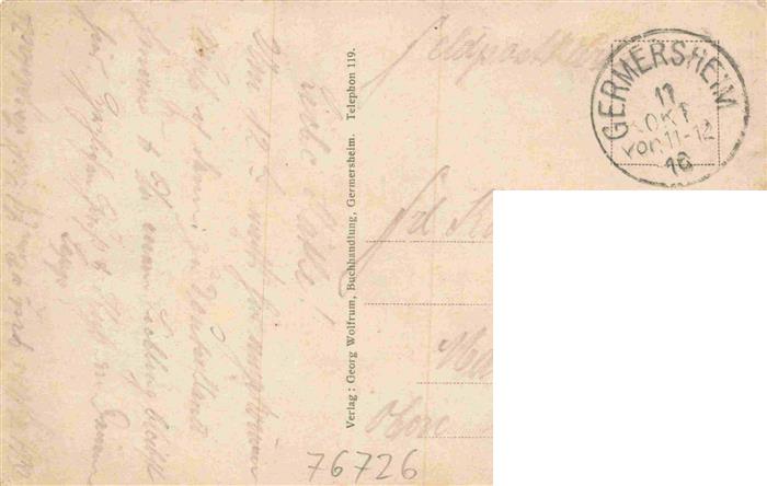 73972349 alte Postkarte Germersheim Ortspartie Feldpost postalisch gelaufen Erhaltung siehe scans [WerneD78] KatCode: 11110007334007