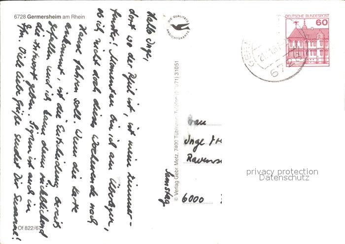 72421825 alte Postkarte Germersheim Park Rheinbruecke Platz Kirche postalisch gelaufen Erhaltung siehe scans KatCode: 11110007334007