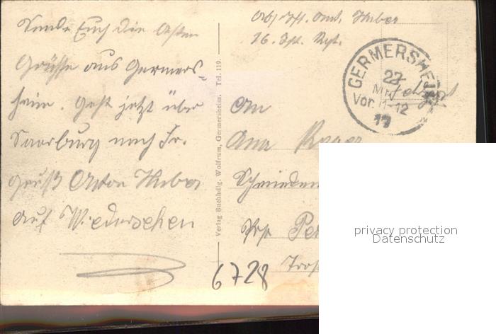 41593924 Germersheim Queich mit Blick auf die Stadt (Feldpost) KatCode 11110007334007
