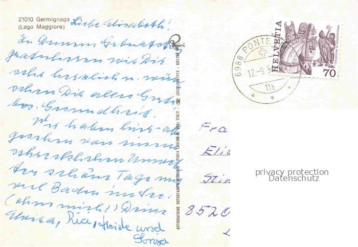 74156901 old postcard Germignaga Lago Maggiore Varese Lombardia IT Fliegeraufnahme Lago-Maggiore Stadtpanorama Seeufer Berge Ziegeldaecher postalisch gelaufen Fliegeraufnahme Erhaltung siehe scans [Karloger] KatCode: 11240