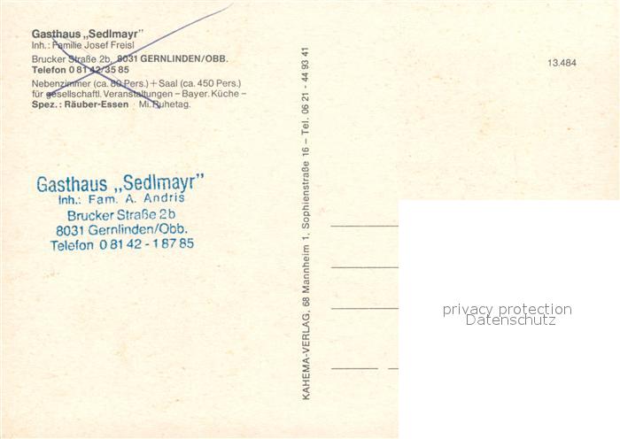 73324290 Gernlinden Gasthaus Sedlmayr Wappen postalisch nicht gelaufen Erhaltung siehe scans [FriedD77] KatCode: 11110009179134