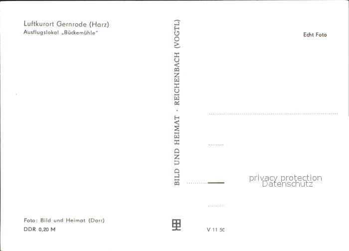 72407943 Gernrode Harz Ausflugslokal Bueckemuehle postalisch nicht gelaufen Erhaltung siehe scans KatCode: 11110015085120