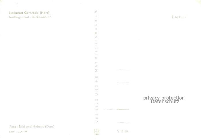 74095370 Gernrode Harz Ausflugslokal Bueckemuehle postalisch nicht gelaufen Erhaltung siehe scans [WerneD78] KatCode: 11110015085120