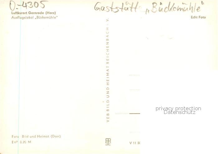 73870113 Gernrode Harz Ausflugslokal Bueckemuehle postalisch nicht gelaufen Erhaltung siehe scans [WerneD78] KatCode: 11110015085120