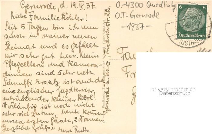 73690892 alte Postkarte Gernrode Harz Blick auf die Stiftskirche postalisch gelaufen Erhaltung siehe scans [FriedD77] KatCode: 11110015085120