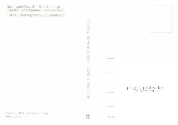 72782485 Gernrode Harz Erholungsheim Stubenberg postalisch nicht gelaufen Erhaltung siehe scans [LiesaD40] KatCode: 11110015085120