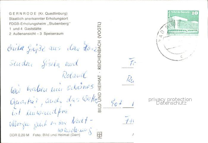 72383452 alte Postkarte Gernrode Harz Erholungsheim Stubenberg postalisch gelaufen Erhaltung siehe scans KatCode: 11110015085120