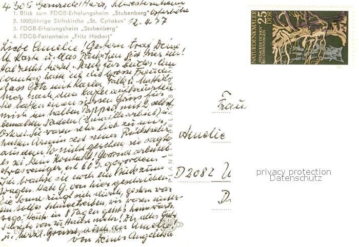 73137843 Gernrode Harz Erholungsheim Stubenberg Stiftskirche St. Cyriakus postalisch nicht gelaufen Erhaltung siehe scans [NatalD47] KatCode: 11110015085120