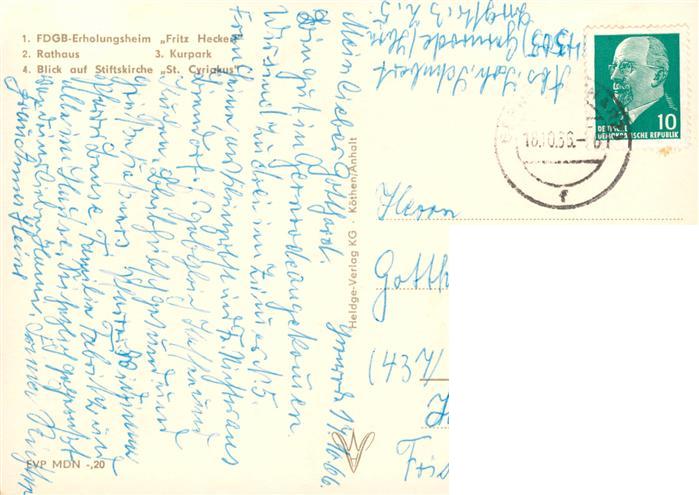 73901011 alte Postkarte Gernrode Harz FDGB Erholungsheim Fritz Hecker Rathaus Kurpark Stiftskirche St Cyriakus postalisch gelaufen Erhaltung siehe scans [WerneD78] KatCode: 11110015085120