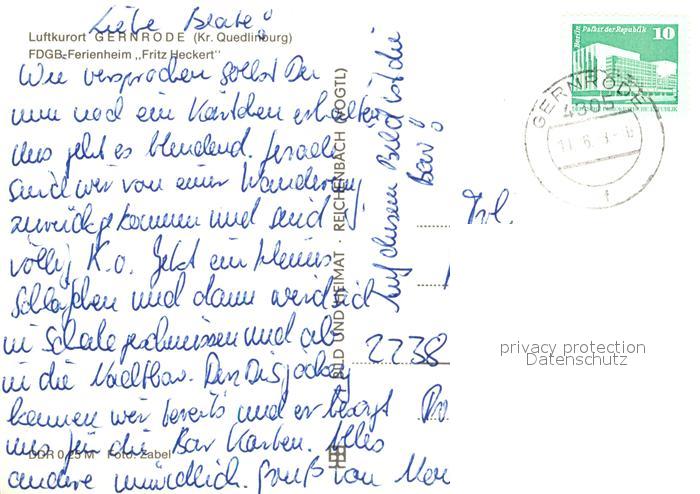 73043774 alte Postkarte Gernrode Harz FDGB Erholungsheim Fritz Heckert postalisch gelaufen Erhaltung siehe scans [WerneD78] KatCode: 11110015085120
