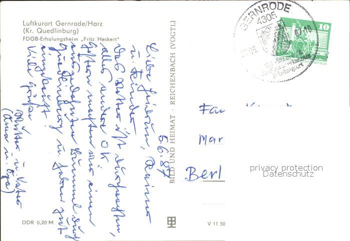 72152618 alte Postkarte Gernrode Harz FDGB Erholungsheim Fritz Heckert postalisch gelaufen Erhaltung siehe scans KatCode: 11110015085120
