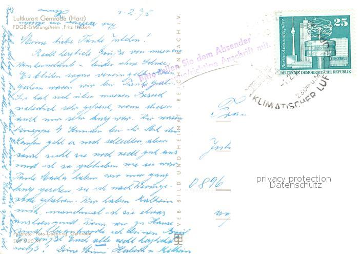 73688031 alte Postkarte Gernrode Harz FDGB Erholungsheim Fritz Heckert postalisch gelaufen Erhaltung siehe scans [WerneD78] KatCode: 11110015085120