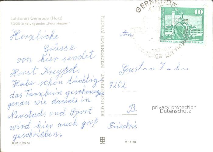 72041400 alte Postkarte Gernrode Harz FDGB Erholungsheim Fritz Heckert postalisch gelaufen Erhaltung siehe scans KatCode: 11110015085120
