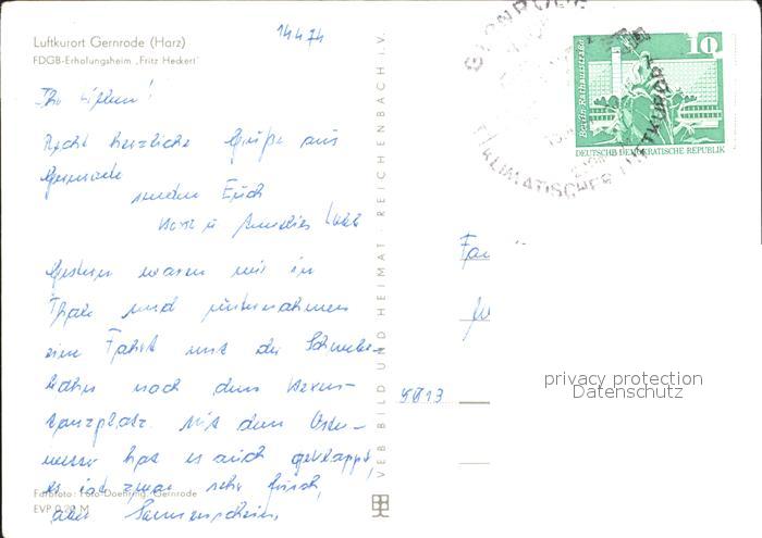 72022518 alte Postkarte Gernrode Harz FDGB Erholungsheim Fritz Heckert postalisch gelaufen Erhaltung siehe scans KatCode: 11110015085120