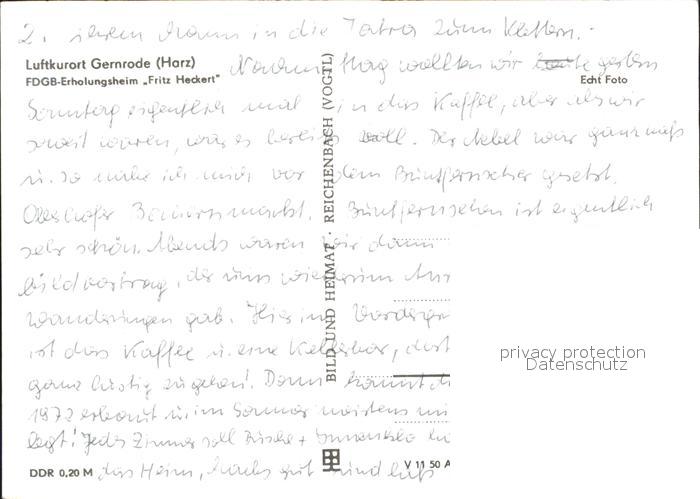 71986543 Gernrode Harz FDGB Erholungsheim Fritz Heckert postalisch nicht gelaufen Erhaltung siehe scans KatCode: 11110015085120