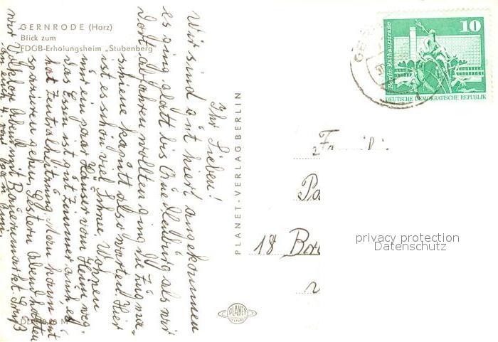73036548 alte Postkarte Gernrode Harz FDGB Erholungsheim Stubenberg postalisch gelaufen Erhaltung siehe scans [KathaD81] KatCode: 11110015085120