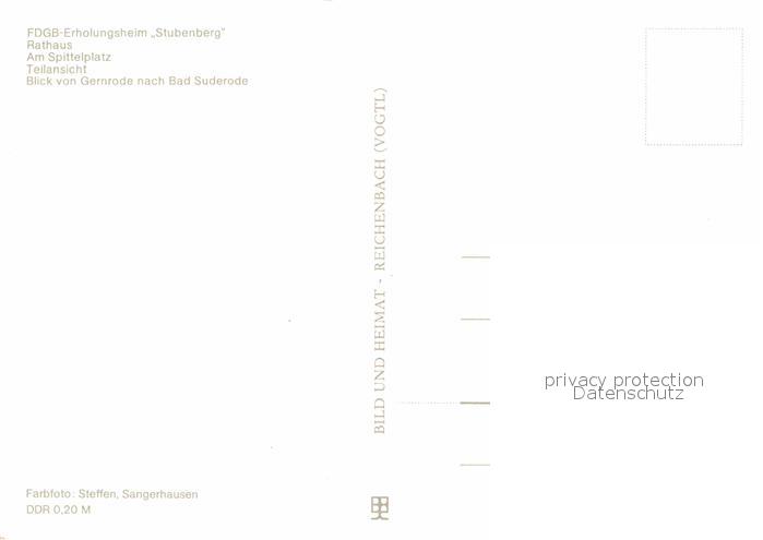 72829131 Gernrode Harz FDGB Erholungsheim Stubenberg Rathaus Spielplatz Blick nach Bad Suderode postalisch nicht gelaufen Erhaltung siehe scans [FriedD77] KatCode: 11110015085120