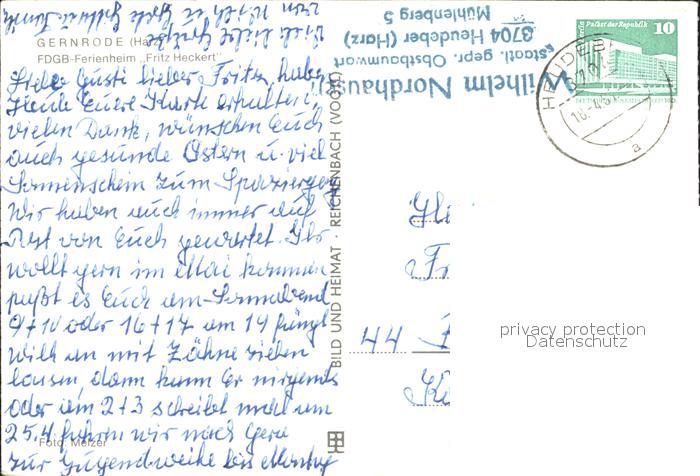 72332082 alte Postkarte Gernrode Harz FDGB Ferienheim Fritz Heckert postalisch gelaufen Erhaltung siehe scans KatCode: 11110015085120