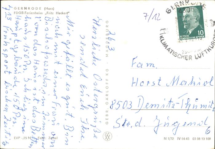 41236439 Gernrode Harz FDGB Ferienheim Fritz Heckert KatCode 11110015085120