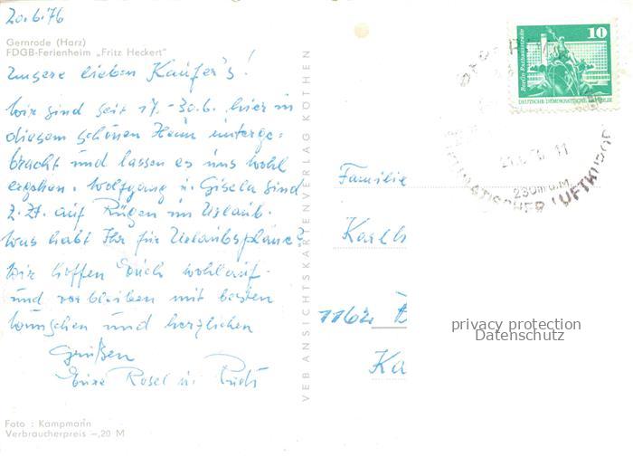 74086338 alte Postkarte Gernrode Harz FDGB Ferienheim Fritz Heckert postalisch gelaufen Erhaltung siehe scans [WerneD78] KatCode: 11110015085120