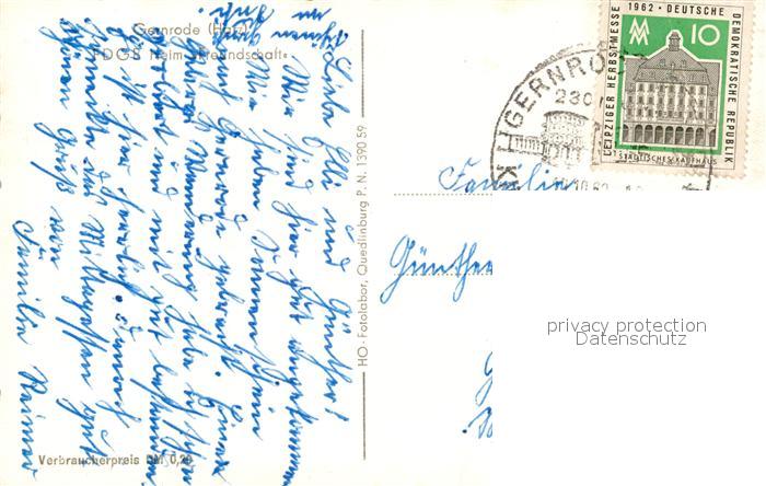 73612796 alte Postkarte Gernrode Harz FDGB Heim Freundschaft postalisch gelaufen Erhaltung siehe scans [WerneD78] KatCode: 11110015085120