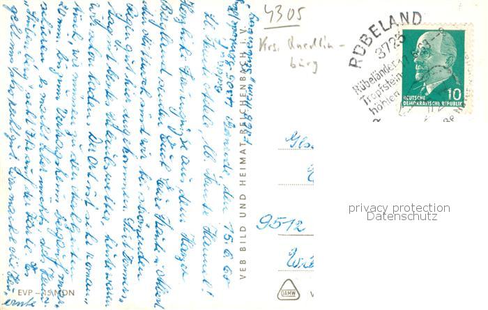 73750656 alte Postkarte Gernrode Harz FDGB Heim Fritz Heckert Cyriakuskirche Rathaus FDGB Heim Stuebenberg postalisch gelaufen Erhaltung siehe scans [WerneD78] KatCode: 11110015085120