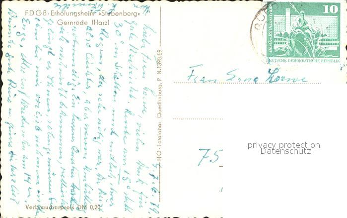 72297108 alte Postkarte Gernrode Harz FDGB Heim Stubenberg postalisch gelaufen Erhaltung siehe scans KatCode: 11110015085120