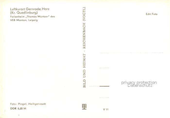72920400 Gernrode Harz Ferienheim Thoms Muentzer des VEB Montan postalisch nicht gelaufen Erhaltung siehe scans [LiesaD40] KatCode: 11110015085120