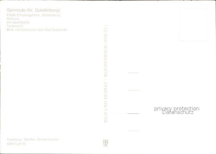 72373596 Gernrode Harz Luftkurort FDGB Erholungsheim Stubenberg Rathaus Spittelplatz postalisch nicht gelaufen Erhaltung siehe scans KatCode: 11110015085120