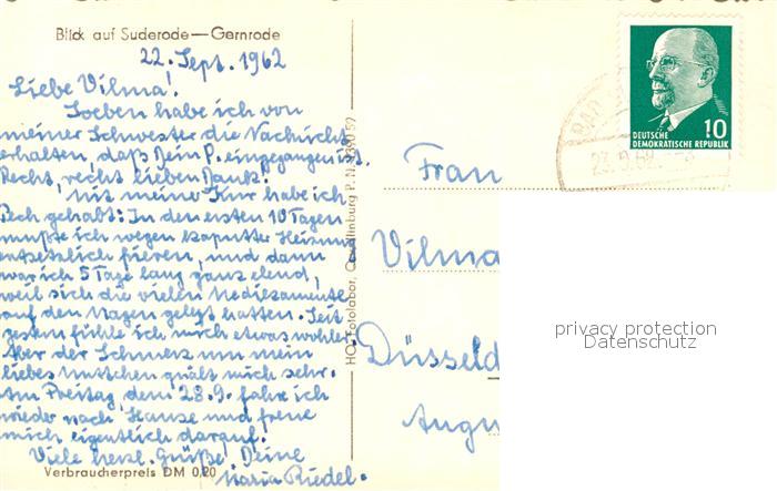 73331391 alte Postkarte Gernrode Harz Panorama Blick auf Suderode postalisch gelaufen Erhaltung siehe scans [FriedD77] KatCode: 11110015085120