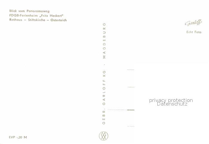 72704410 Gernrode Harz Panorama FDGB Erholungsheim Fritz Heckert Rathaus Stiftskirche Osterteich postalisch nicht gelaufen Erhaltung siehe scans [FriedD77] KatCode: 11110015085120