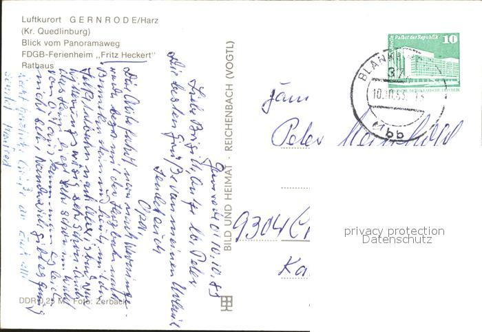 72377138 alte Postkarte Gernrode Harz Panoramaweg FDGB Ferienheim Fritz Heckert Rathaus postalisch gelaufen Erhaltung siehe scans KatCode: 11110015085120
