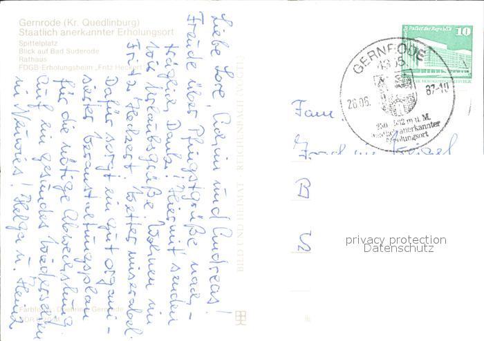 72382546 alte Postkarte Gernrode Harz Spittelplatz Bad Suderode Rathaus Erholungsheim Fritz Heckert postalisch gelaufen Erhaltung siehe scans KatCode: 11110015085120