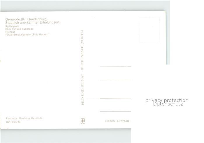 72331552 Gernrode Harz Spittelplatz Bad Suderode Rathaus FDGB Erholungsheim Fritz Heckert postalisch nicht gelaufen Erhaltung siehe scans KatCode: 11110015085120