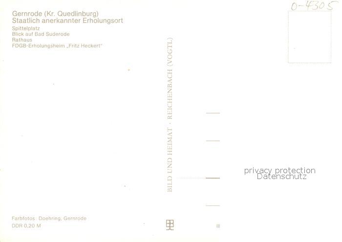 73059305 Gernrode Harz Spittelplatz Bad Suderode Rathaus FDGB Erholungsheim Fritz Heckert postalisch nicht gelaufen Erhaltung siehe scans [WerneD78] KatCode: 11110015085120