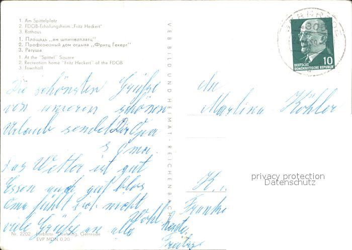 72373595 alte Postkarte Gernrode Harz Spittelplatz FDGB Erholungsheim Fritz Heckert Rathaus postalisch gelaufen Erhaltung siehe scans KatCode: 11110015085120