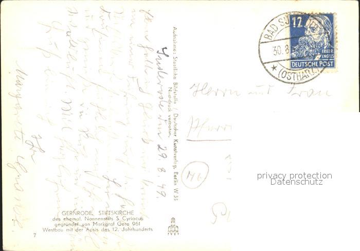 72208675 alte Postkarte Gernrode Harz Stiftskirche postalisch gelaufen Erhaltung siehe scans KatCode: 11110015085120