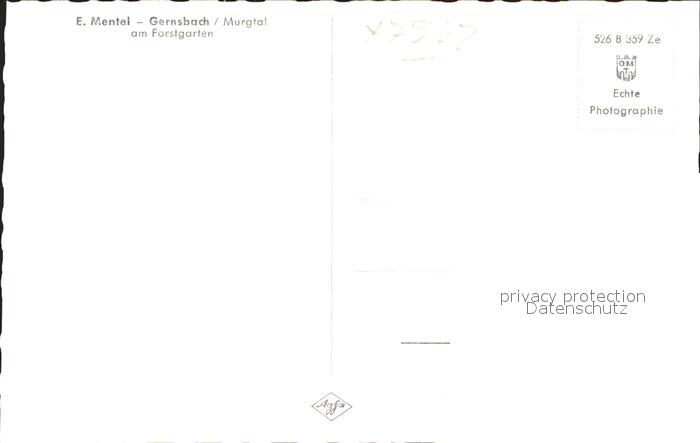 41775184 Gernsbach E. Mentel Forstgarten postalisch nicht gelaufen KatCode: 11110008216017