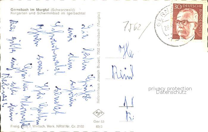 31728229 alte Postkarte Gernsbach Fliegeraufnahme Kurgarten Schwimmbad Igelbachtal postalisch gelaufen Erhaltung siehe scans KatCode: 11110008216017