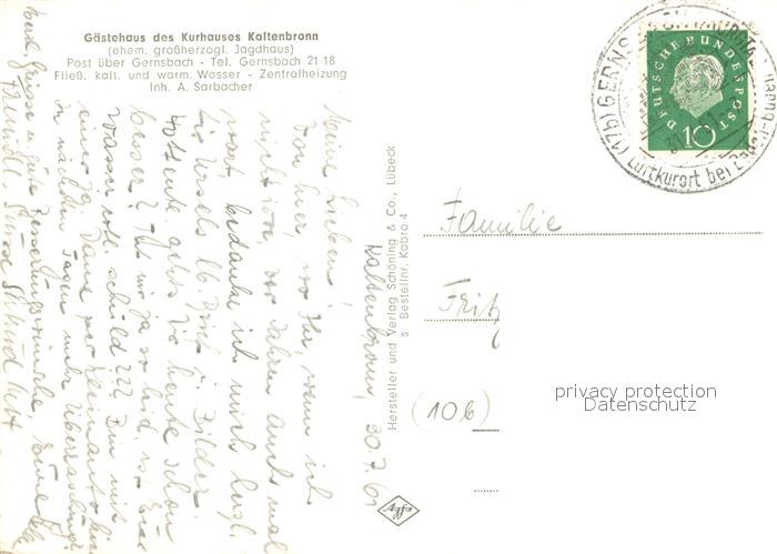 73681950 alte Postkarte Gernsbach Gaestehaus des Kurhauses Kaltenbronn postalisch gelaufen Erhaltung siehe scans [FriedD77] KatCode: 11110008216017
