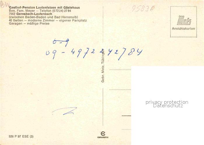 72786506 Gernsbach Gasthof Pension Lautenfelsen postalisch nicht gelaufen Erhaltung siehe scans [AndreD76] KatCode: 11110008216017