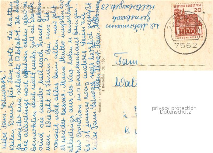 73129966 alte Postkarte Gernsbach Igelbachstraße postalisch gelaufen Erhaltung siehe scans [KathaD81] KatCode: 11110008216017