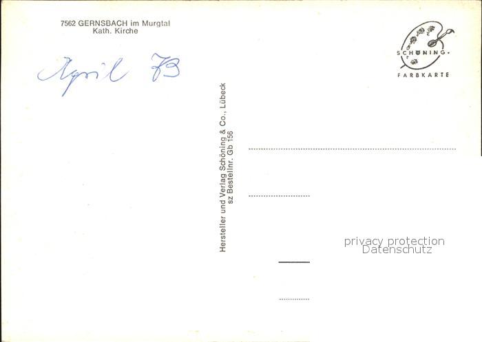72543646 Gernsbach Kath Kirche postalisch nicht gelaufen Erhaltung siehe scans [WerneD78 kv016box] KatCode: 11110008216017