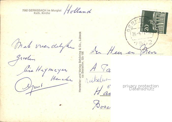 72401502 alte Postkarte Gernsbach Kirchenpartie postalisch gelaufen Erhaltung siehe scans KatCode: 11110008216017